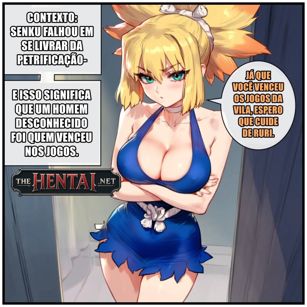 Exclusividade The Hentai: Hentai de Dr. Stone, onde, como Senku não conseguiu se libertar da petrificação, os jogos do vilarejo foram totalmente diferentes, tendo uma outra pessoa como vencedora. Esse cara desconhecido fica incomodado com quem é sua recompensa e decide partir para cima de outra garota, fodendo-a com toda sua força e engravidando-a, para que assim ele fosse o primeiro homem a engravidar uma mulher nessa nova era da humanidade.