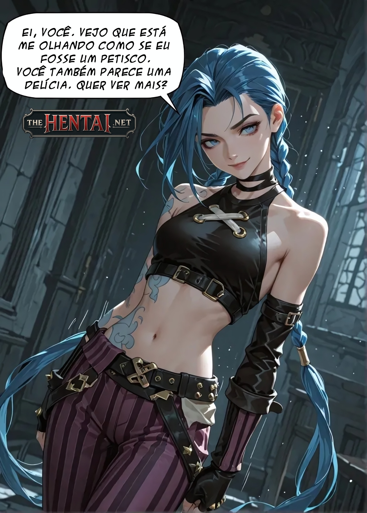 Exclusividade The Hentai: Jinx, ela estava vivendo sua vida, porém um cara que talvez seja o namorado dela ou que tenha relação sexual quer meter nela e assim faz, e passam horas transando, e ela diz que adora ele pegando nos peitos pequenos dela.