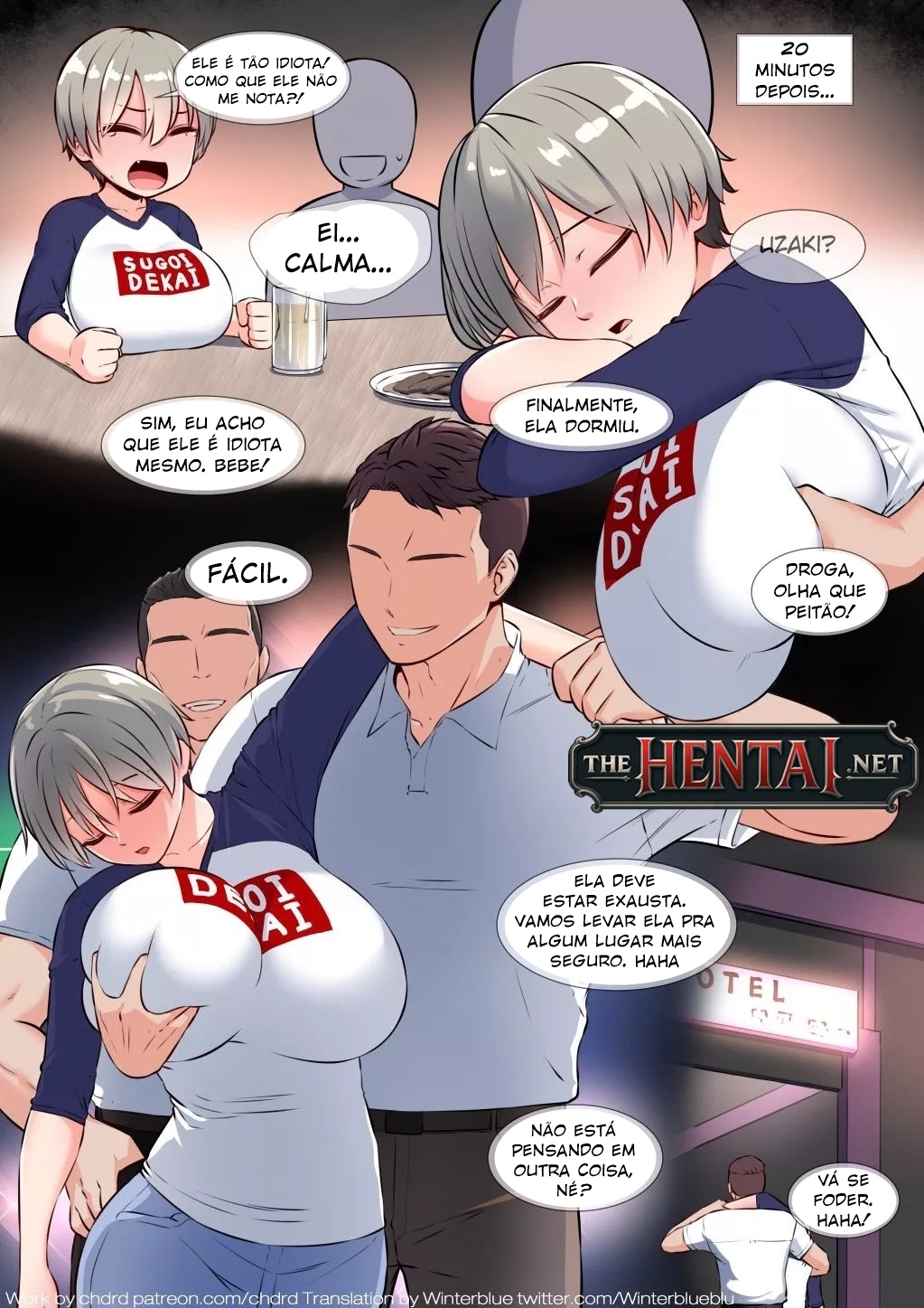 Exclusividade The Hentai: Hentai de Uzaki-chan, a tal da waifuzinha baixinha, porém hiperpeituda, que deu um alvoroço na internet. Aqui acompanhamos ela bebendo muito, ficando bêbada e desabafando com um bando de homens aleatórios até que ela acaba dormindo. É nesse momento que eles levam ela para um canto mais "seguro" na ideia de foderem seu corpinho enquanto ela está desacordada, filmando tudo, e fazendo questão de humilhar ela quando ela acorda no meio do sexo.